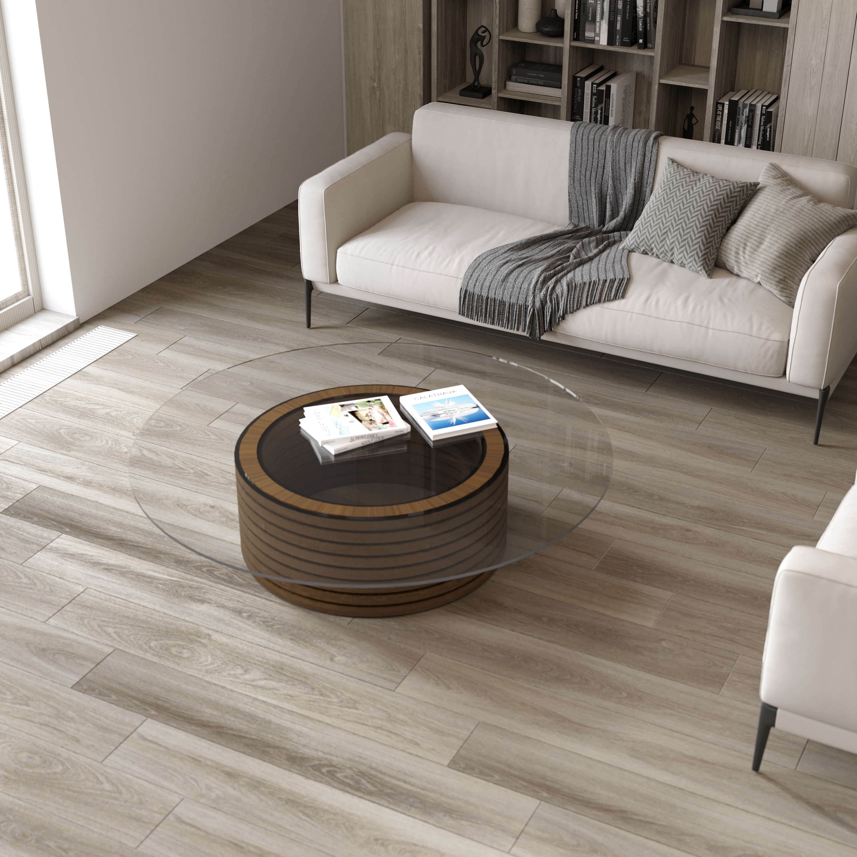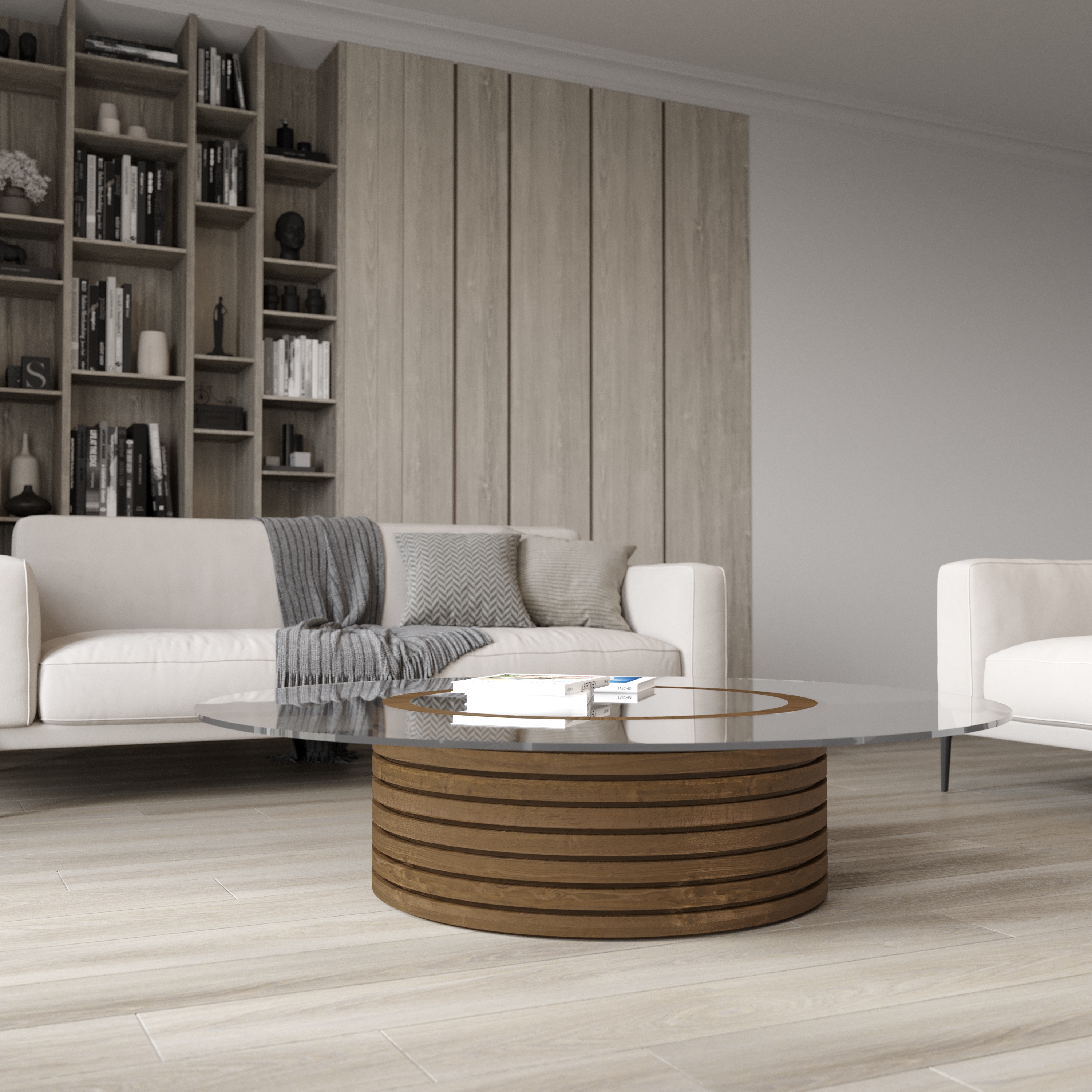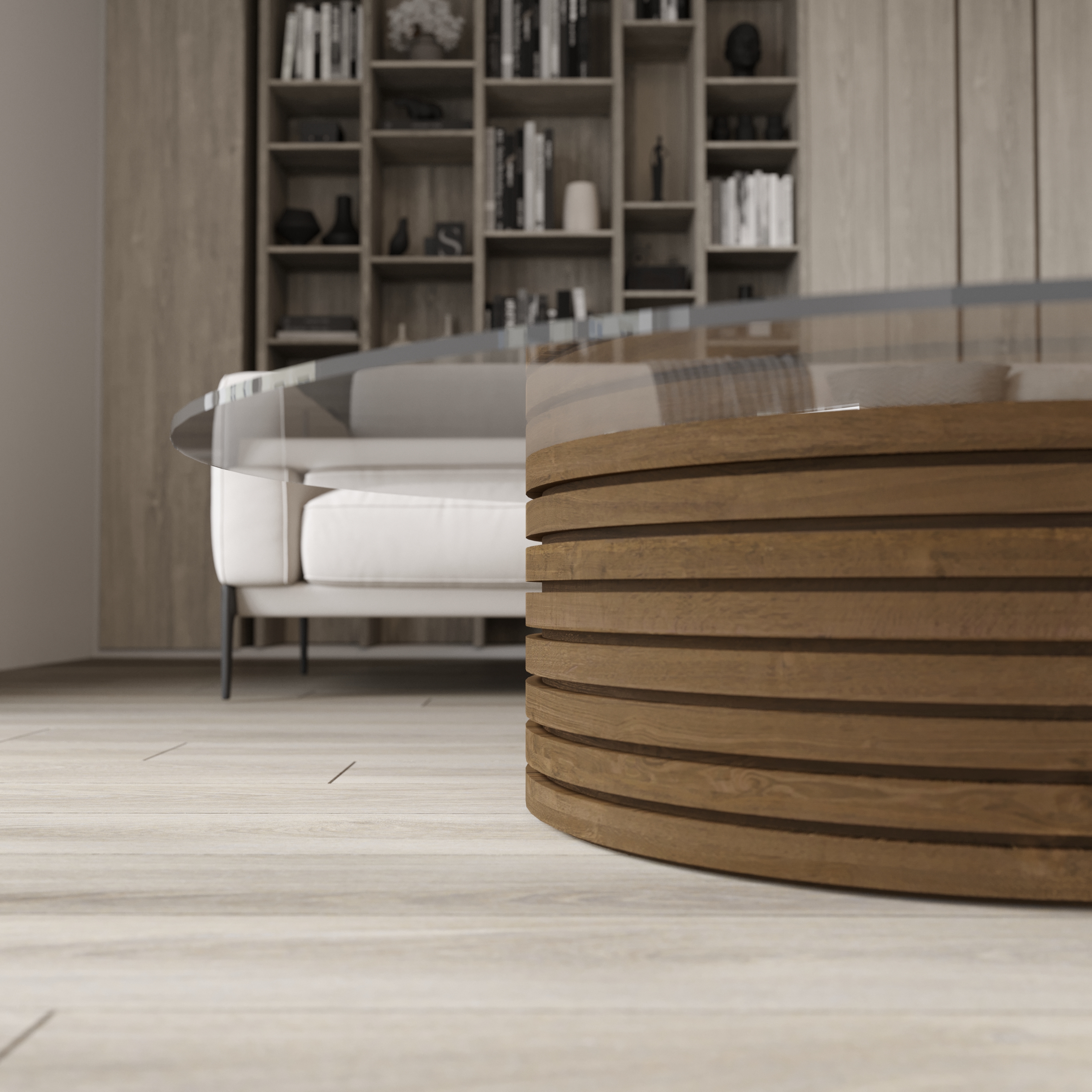 Coffee table from oak with glass top. Materials and dimensions can be changed upon request. Glass can be black translucent.